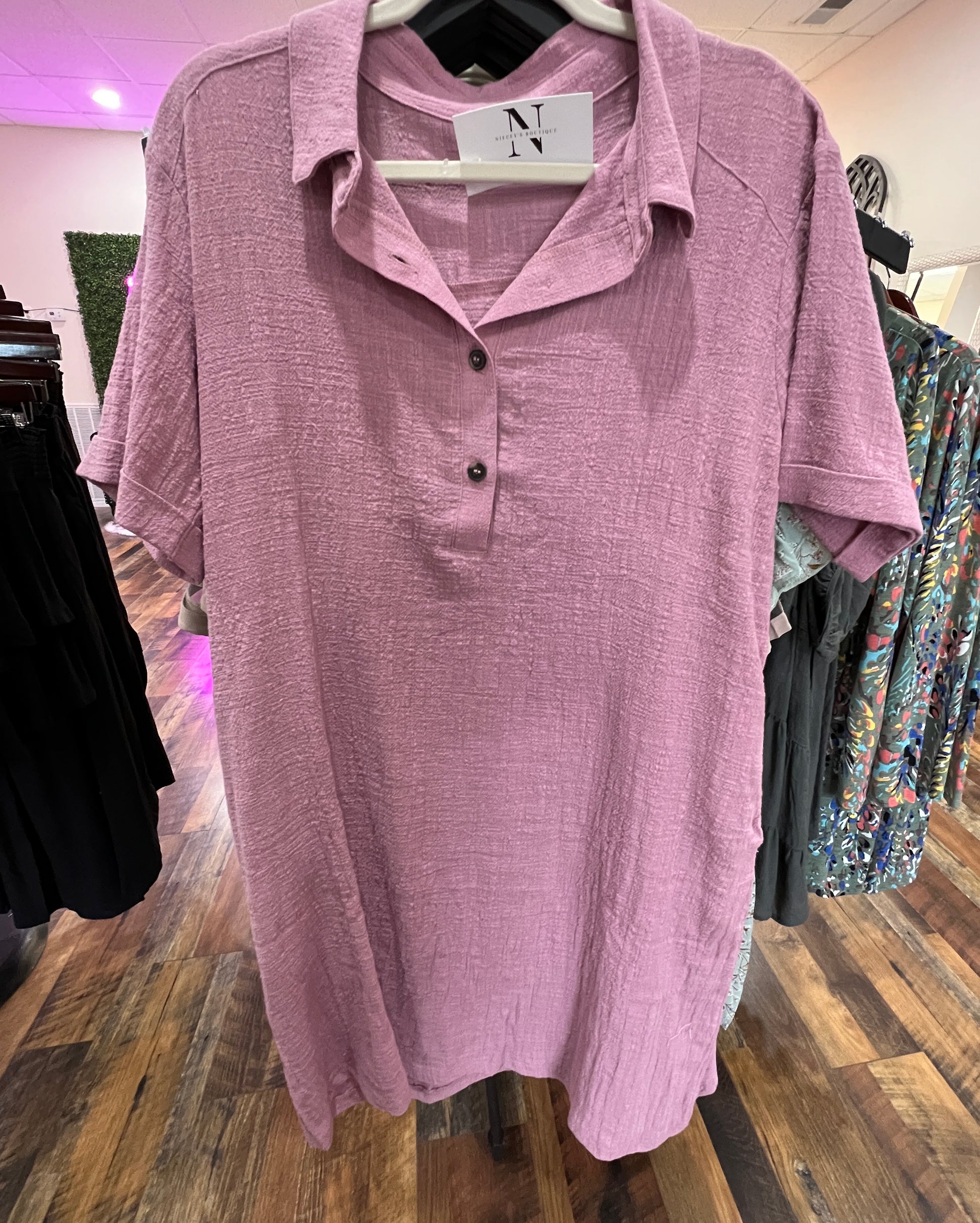 This Zenana lightweight gauze shirt dress is another must have. Side pockets and button down collar make it classic. Simple, basic.... great for summer!